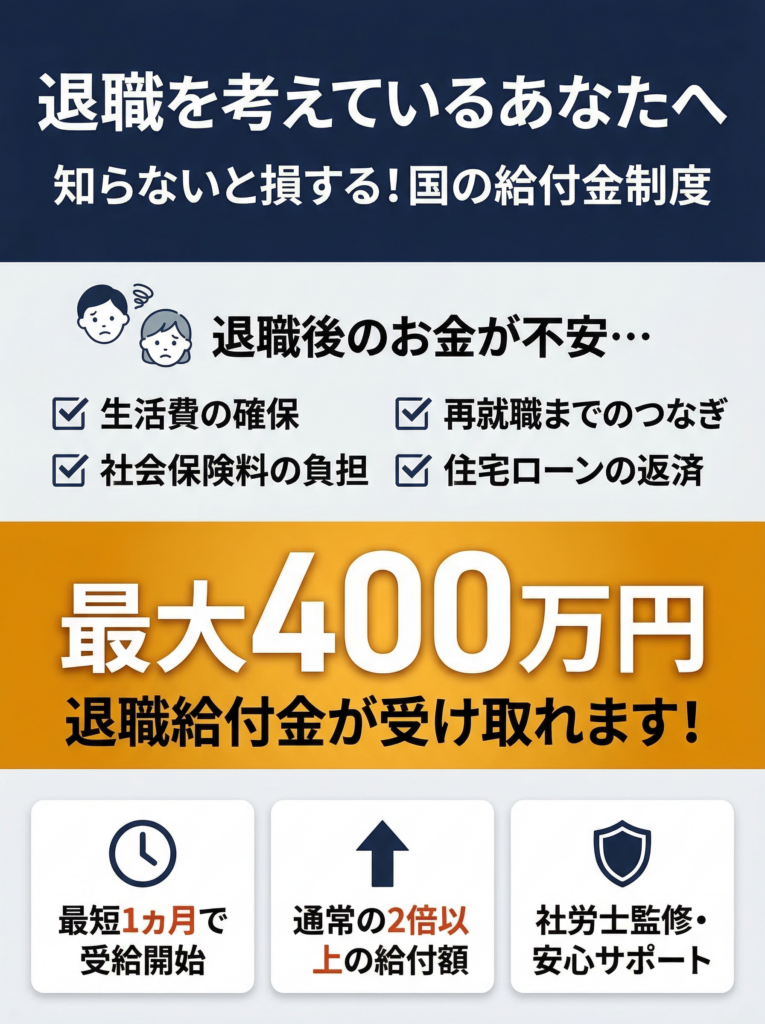 今の職場で限界を感じているなら、「辞める前に知っておきたい給付金・支援制度」があります。